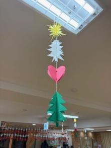 デイケア クリスマスの飾りつけ 今月控えているクリスマス会に向けて、デイケアではご利用者様にもご協力頂きながら デイフロアの飾りつけ制作を行っています。クリスマスカラーのお花がみを使って、ひとつひとつ作成します。手先が器用な方は、ほんの数分で一つを仕上げてしまいます。なかには初めてお花がみを触ったという男性利用者さん・・・やり方をお伝えすると、とても丁寧に仕上げてくださいました。少しでも季節の雰囲気を感じて頂けたらと思い、私たち職員も日々様々な準備に励んでいます。
